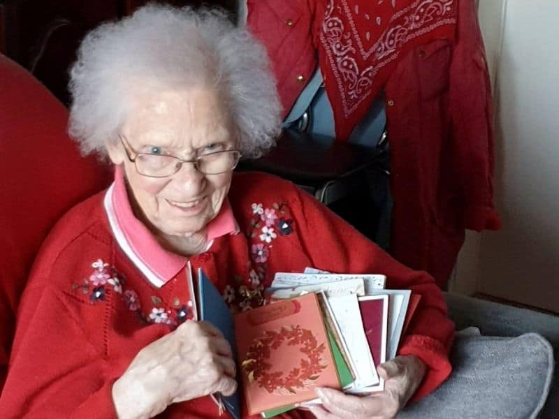 Nancy Letham is a mom of seven who now has 17 grandchildren, 46 great-grandchildren, and 10 great-great-grandchildren. Aside from the cards she received, she also received chocolates, flowers, and Christmas ornaments.
