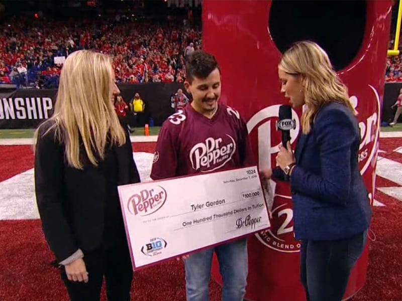 On December 7, Tyler Gordon won the grand prize during the tuition giveaway contest by Dr. Pepper. Tyler won $100,000 during the halftime of the Big Ten Championship game. The young student then used that opportunity to share the Gospel.