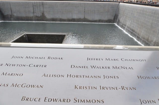 The memorial at Ground Zero, a fountain where one of the Twin Towers of the World Trade Centre once stood.